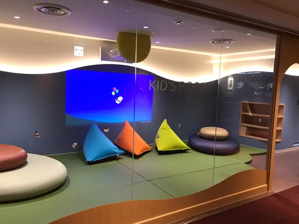 中央ターミナル3階にある無料のキッズスペース。靴を脱いで遊べるプレイスペース(キッズルーム)には、そらやんのかわいい映像がゆったりと流れており、小さな子どもの休憩場所として最適です。